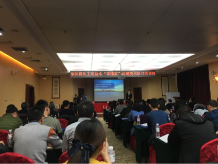 培训邀请了全区各盟市园区环保系统管理人员及国内知名专家与相关高盐水处理企业,共商自治区零排放技术趋势与政策导向。久科环保作为拥有国际领先煤化工高含盐废水零排放及资源化应用技术的环保企业,由技术总监任赛世杰在12月5日上午作了报告并与参会专家及盟市环保系统干部进行了互动探讨。
